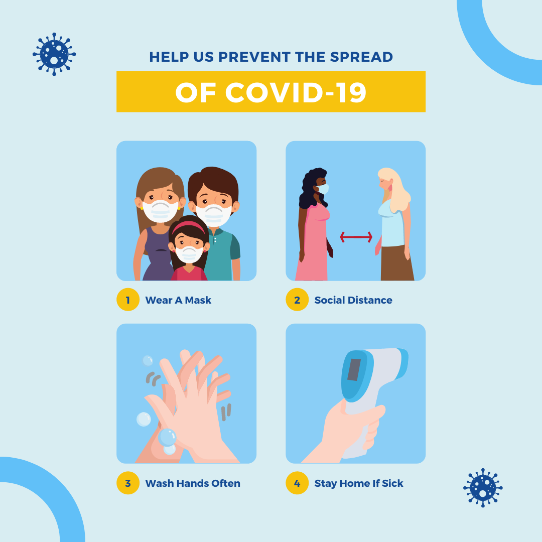 Remember, you can also help prevent the spread and do your part by following our COVID-19 policies. These include wearing a mask at all times that fits snugly over the nose and mouth (unless actively eating or drinking), keeping your distance from others, and washing your hands often. Take care and stay safe!