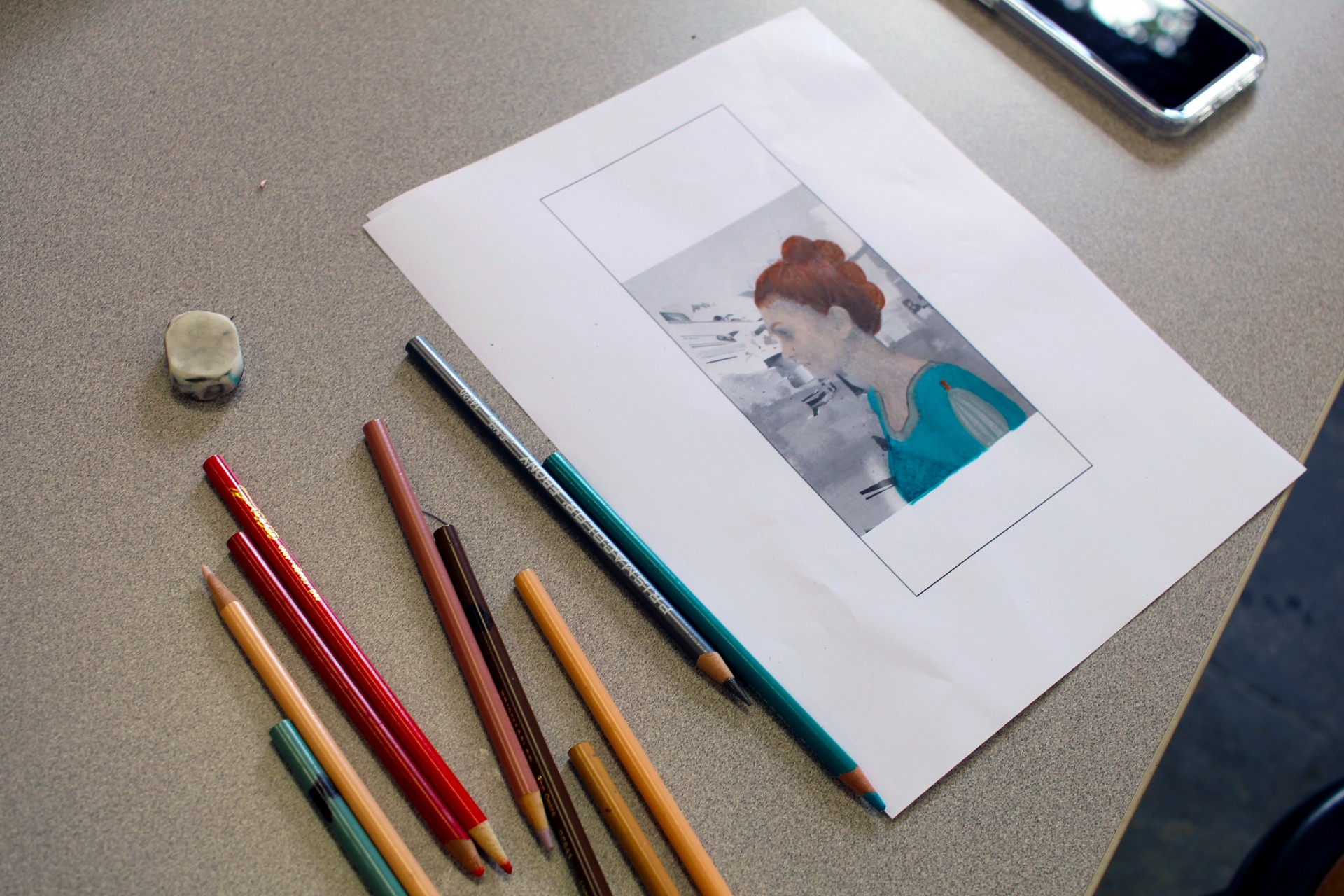 With the Art History students, the class first started with an introduction to Renaissance art, identifying the main characteristics of the time period and getting an understanding of what was considered beautiful at the time. Ultimately, by studying a photo of themselves and comparing it with other images from the period, students would end up drawing themselves in the style of a Renaissance portrait.