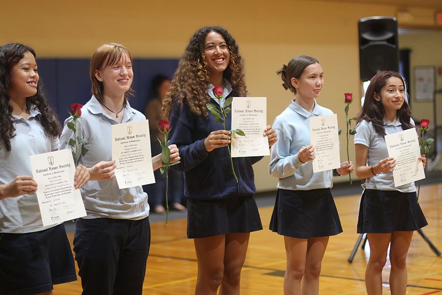 A few of the newest National Honor Society members recieve their certificates and roses.