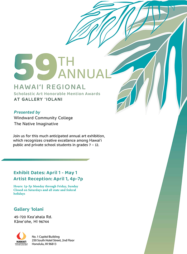 The 59th Annual Hawaii Regional Scholastic Art Honorable Mention Awards serves to recognize creative excellence among Hawaii's private and public school students in grades 7-12.