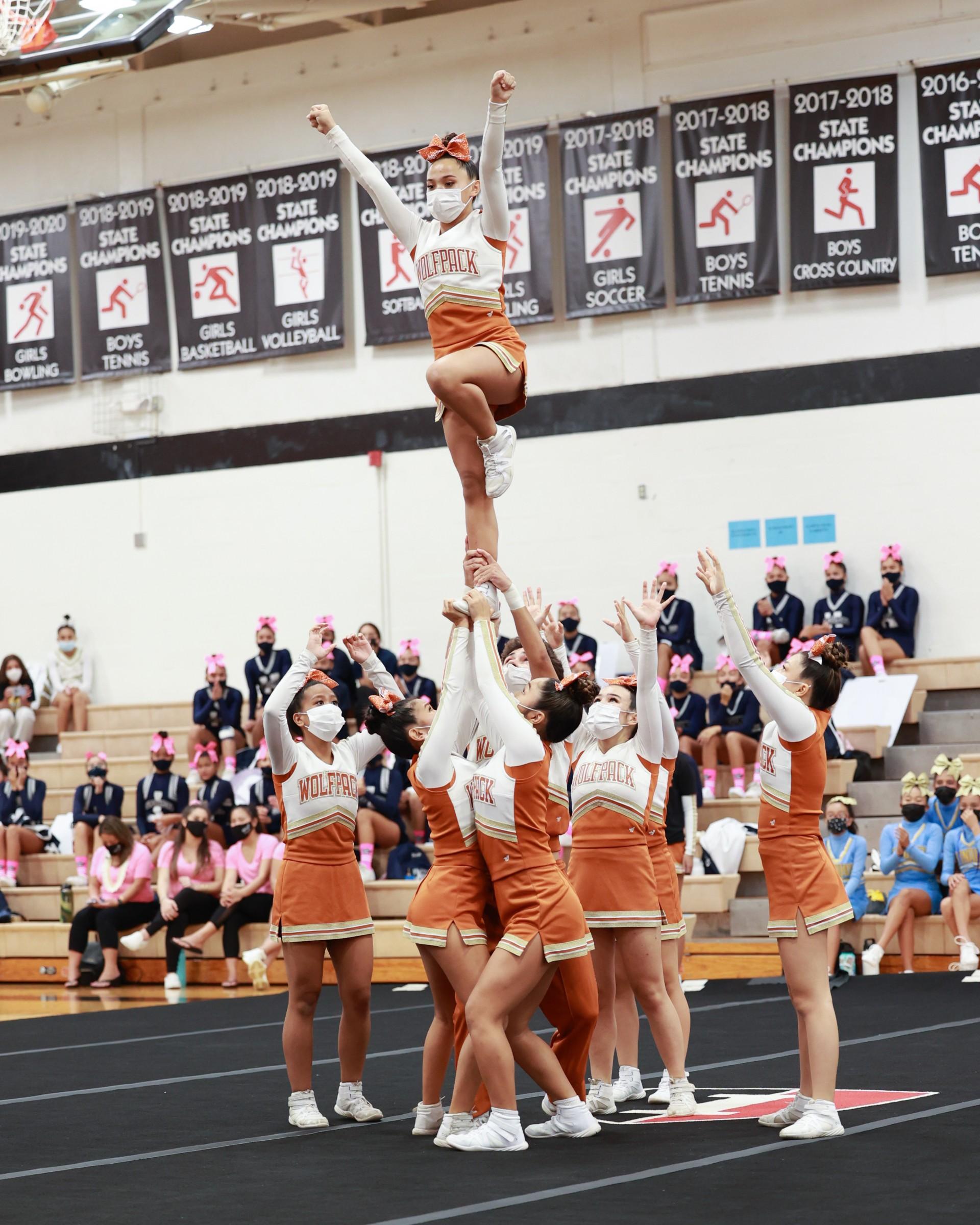 The Pac-5 Varsity Cheerleading team showcased their final performance of the 2021 season at the ILH Cheer Championships held at Kamehameha Schools this past Saturday. The Wolfpack team gave it their all and finished in 6th place. Congratulations to La Pietra junior Cece N. on another successful and competitive cheer season!