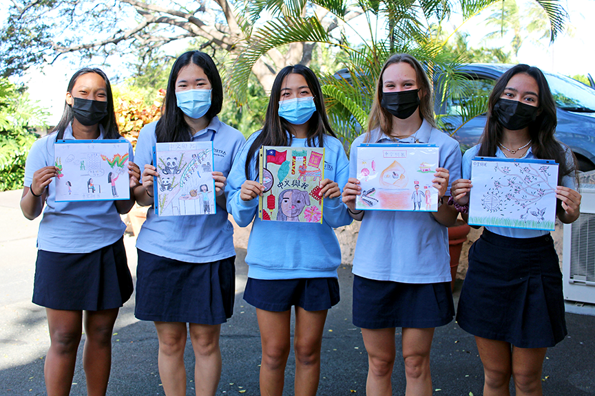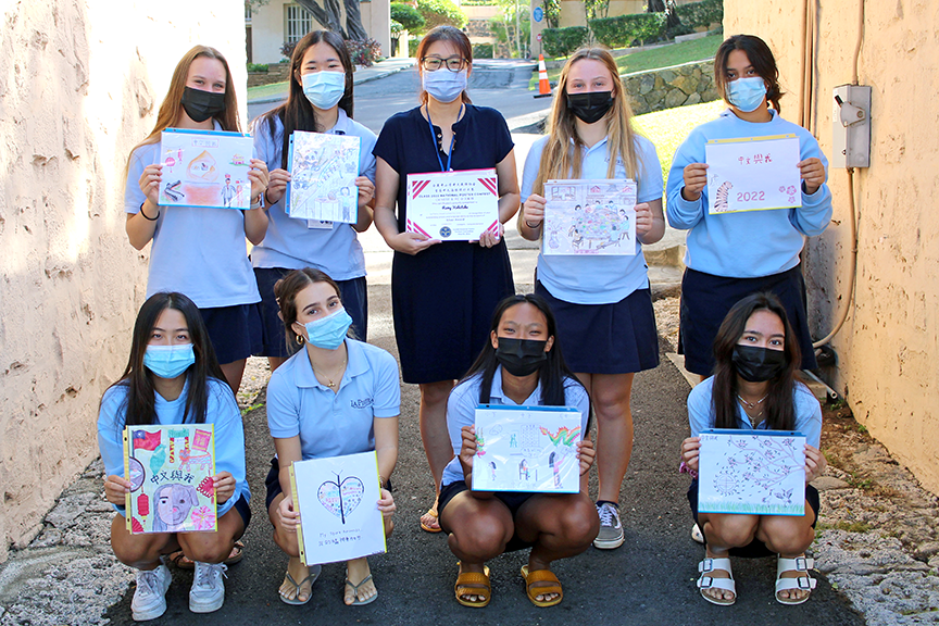 Ms. Huang's Chinese Culture students with their CLASS National Poster Contest entries