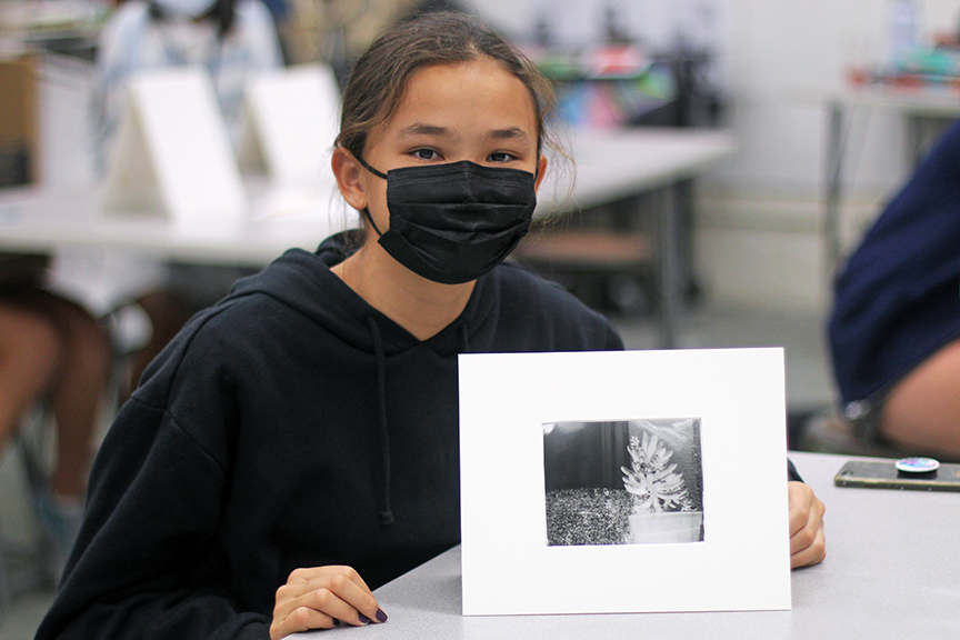 7th-grader Louisa R. and her final matted pinhole photograph.